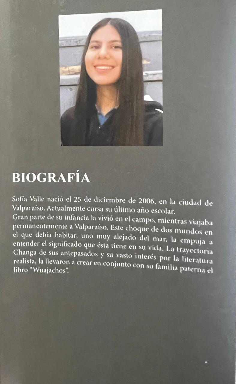 “Sofía Marina Valle Gálvez, exalumna de nuestro colegio y actual estudiante de Derecho en la Universidad de Playa Ancha, nos visitó el jueves 9 de abril, brindándonos un grato encuentro. En esta ocasión, nos hizo entrega de su libro “Wuajachos”, una obra que reúne relatos sobre la trayectoria changa de sus antepasados, reflejando su profundo interés por rescatar y difundir sus raíces culturales. Este valioso aporte pasará a formar parte de nuestra biblioteca, enriqueciendo así el patrimonio literario de nuestra comunidad educativa.