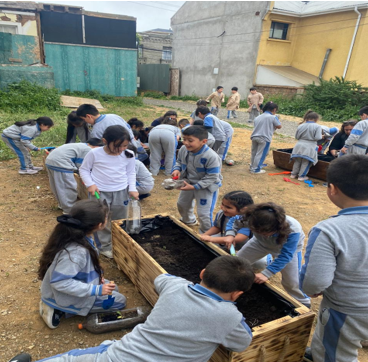 “Con el objetivo de fomentar la conciencia ambiental, los primeros básicos se unieron para transformar un espacio del colegio en un huerto productivo.”